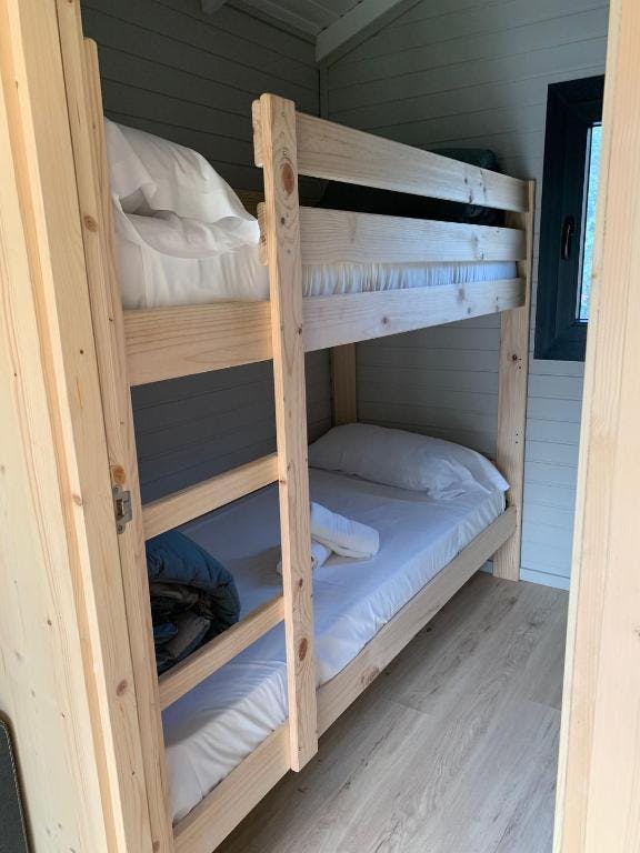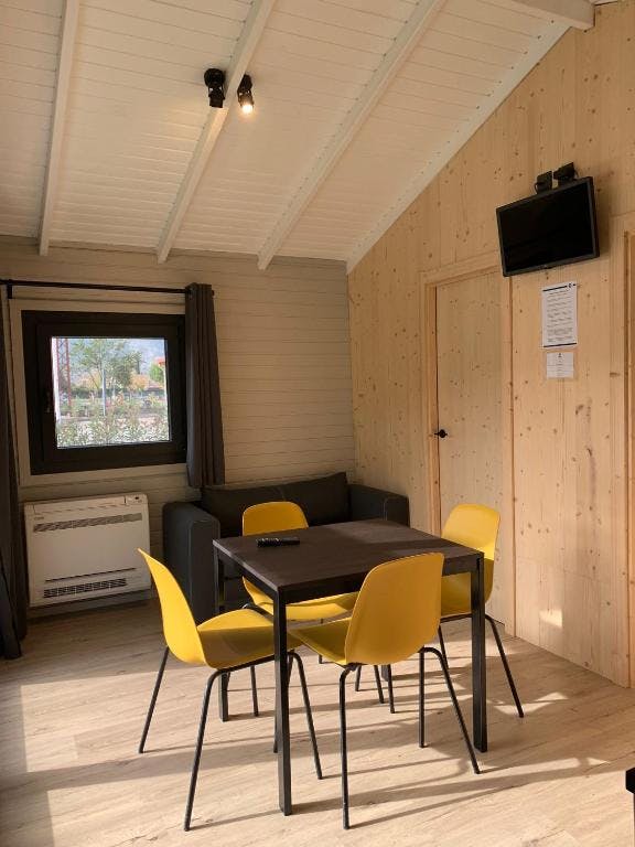 This air-conditioned bungalow features a living room, a separate bedroom, and a bathroom with a walk-in shower. The kitchen is equipped with a refrigerator, dishwasher, kitchenware, and a microwave. It also includes a terrace with garden views, soundproofed walls, and a flat-screen TV with cable channels. The accommodation has 3 beds.
